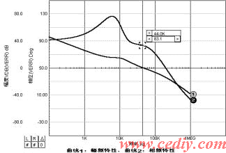 最大输出电压和最小输出电压结合上面的(3)式推出。即当DON=0,误差放大器输出最小控制电压0.75V;当DON=1,误差放大器输出最大控制电压1.75V。最终TPS54310误差放大器的宏模型见(图7),其开环仿真曲线见图(8)。